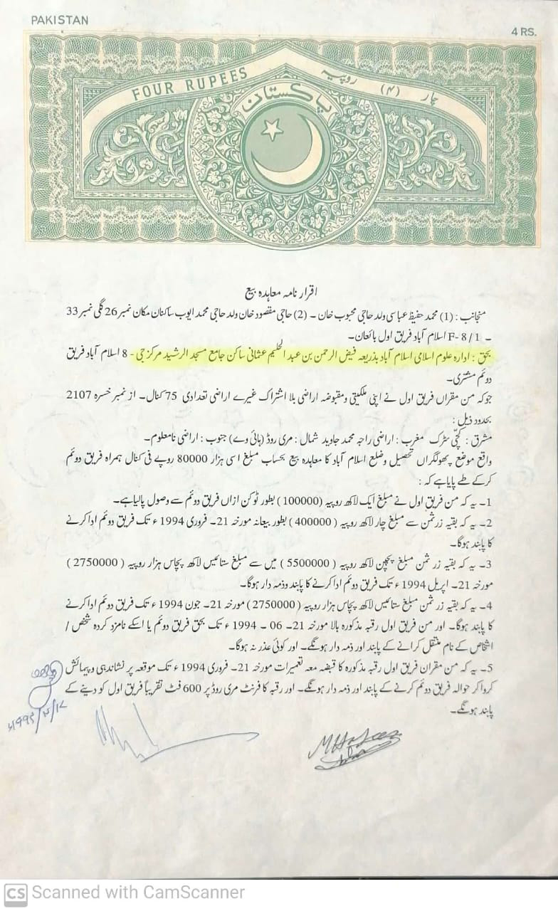 ادارہ اس کیس میں فریق نہیں تھا جسکی وجہ سے ادارہ اس کیس سے نابلد رہا اور نہ ہی ادارہ اپنا مؤقف کورٹ میں پیش کر سکا۔ کچھ عرصہ کیس چلنے کے بعد فریقین نے ادارے کی زمین سے متعلق عدالت میں صلح کر لی اور ایک راضی نامہ عدالت میں پیش کیا۔(فریقین کا راضی نامہ ذیل میں لف ہے)
