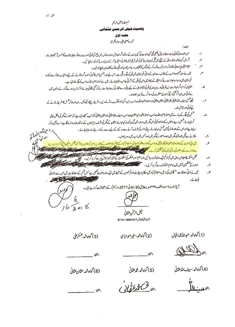 باوجود اس کے کہ حضرت مولانا رحمہ اللہ نے ادارے کے نظم و نسق، شفافیت اور بقاء کے لیے مضبوط دستور، واضح وصیتیں اور عملی نظام چھوڑا تھا، حضرت مولانا رحمہ اللہ کے بعض صاحبزادگان اور خاندان کے بعض افراد نے ایسے رویے اختیار کیے جو نہایت افسوسناک اور تکلیف دہ ہیں۔(اس سلسلے میں مولانا رحمہ اللہ کی وصیت درج ذیل ہے)