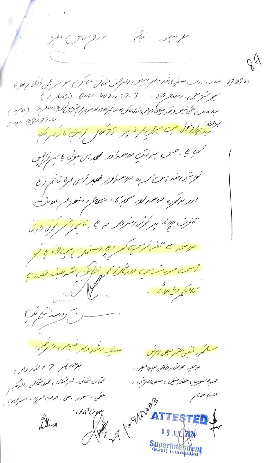 4) وراثتی کیس کا فیصلہ معطل کرنے کی درخواست: ادارے کی انتظامیہ نے سال 2024ء میں مذکورہ بالا وراثتی کیس کے فیصلے کے خلاف مقدمہ دائر کیا جس میں ادارے نے اپنی زمین سے متعلق حقائق پیش کیے۔ اس کیس کی پہلی ہی سماعت میں وراثتی کیس کا فیصلہ سنانے والے ہی جج نے اپنےفیصلے کو کالعدم قرار دے دیا۔( فیصلہ ذیل میں لف ہے)